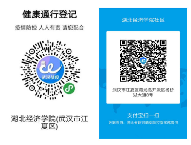 六、考生應提前注冊“湖北健康碼”、“武漢戰疫”、“通信大數據行程卡”,進校時提前掃碼,準備好第三條規定的健康碼和通信大數據行程卡界面,提高通行效率。(見下圖)